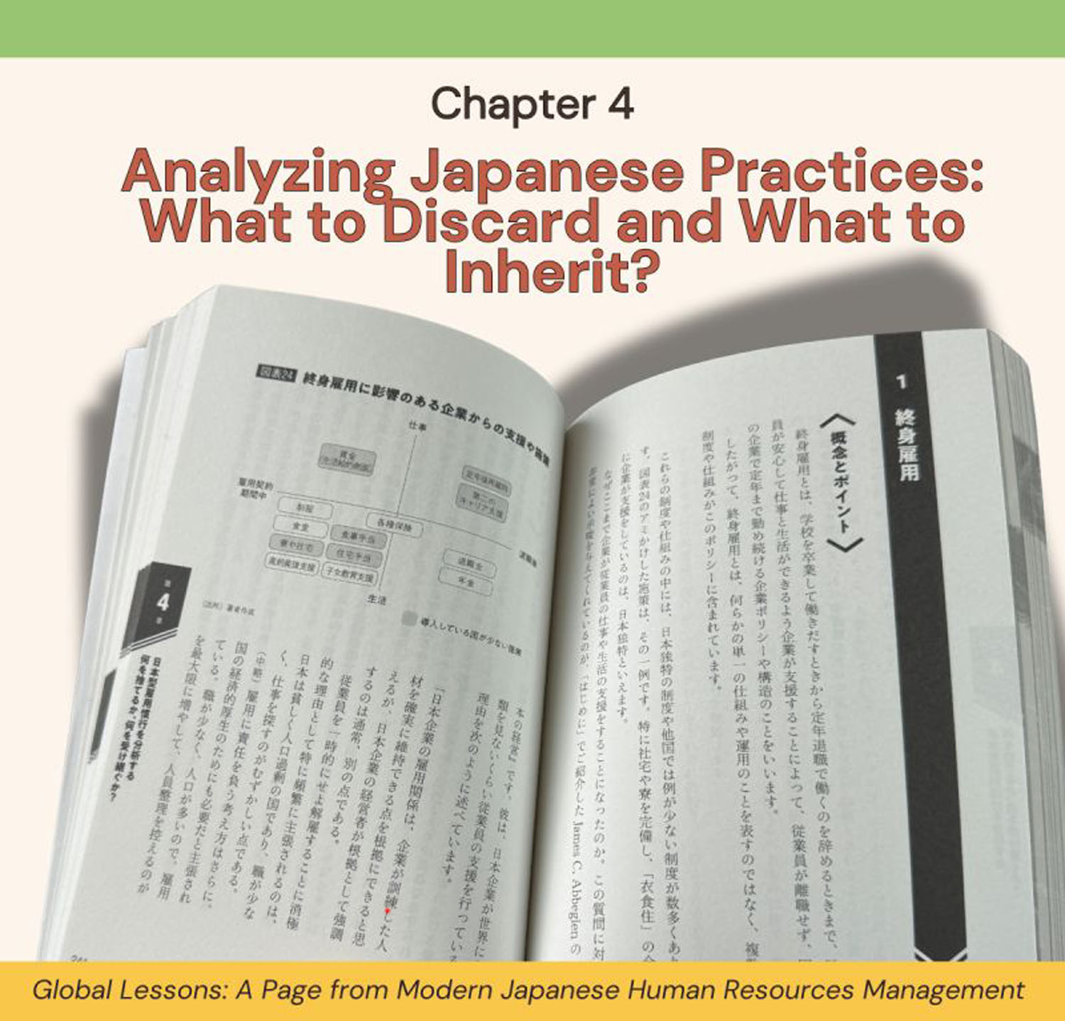 本章では、実践的な問いに焦点を当てます:伝統的な日本の雇用慣行のうち、どの要素を引き継ぐべきか、またどの要素を変更または廃止すべきかということです。これらの慣行を現状のまま保存すべきものとして扱うのではなく、本章ではより批判的に検証します。