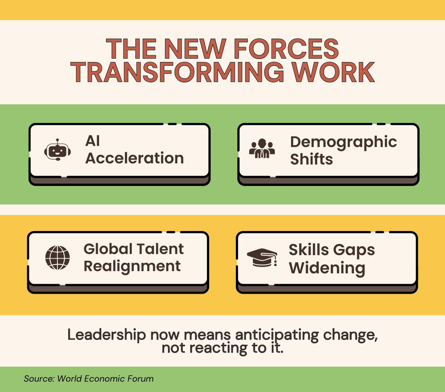 人口動態の変化、AIの加速、そして世界的な力学の変化が同時に進行しています。その結果、単に職種の変化だけでなく、スキルの定義、育成、評価の方法そのものが変化しています。