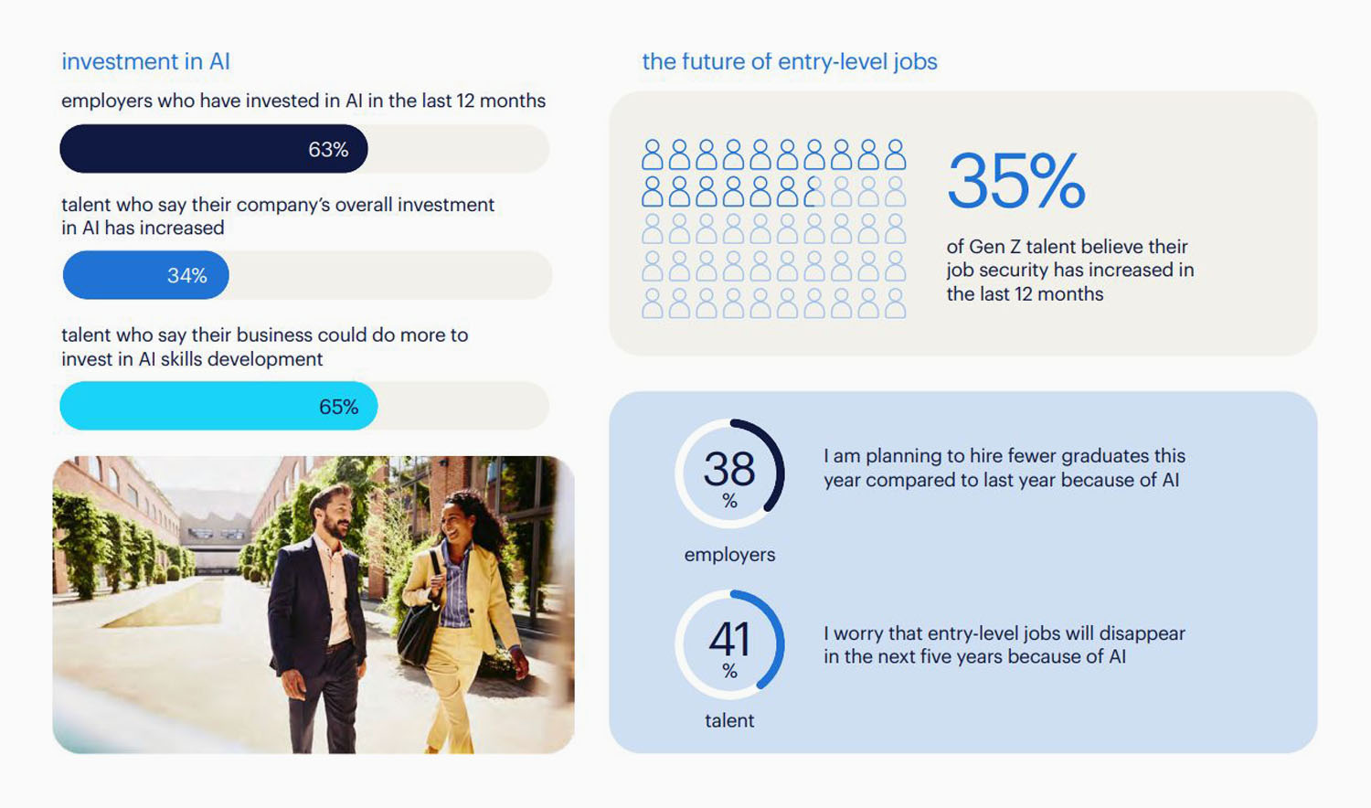 The report points to a growing gap between how organisations see the future and how employees feel about it. While most employers remain optimistic about growth, only about half of employees share that confidence.